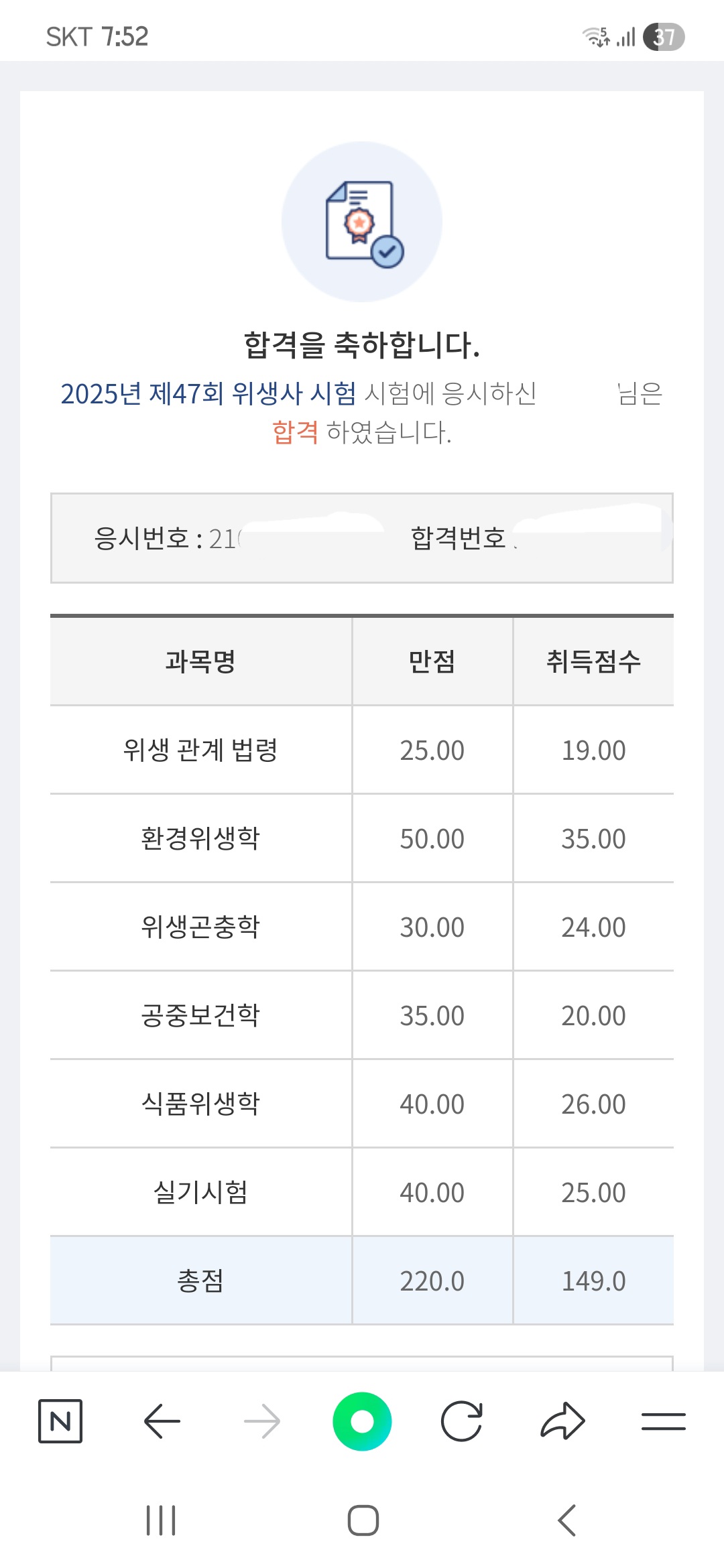 소감: 사실 공부 기간도 많이 짧고 실제로도 공부를 적게 하여 많이 걱정을 하고 실제로도 시험 자체가 많이 까다로워 합격할 수 있을까 굉장히 걱정을 많이 하였는데 정말 운이 좋게도 합격을 하여 너무나 감격스러운 것 같습니다. 시대에듀는 사실 우연히 알게 된 곳인데, 오히려 알게되어 이렇게까지 올 수 있었던 것 같아 교수님들과 시대에듀에게 너무나 큰 감동을 받고 감사들 드립니다.